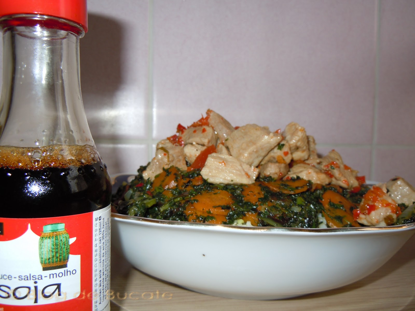 Parca nu as indrazni sa-i spun mancare chinezesca, dar are aromele uneia... Noua ne-a placut enorm. Si am facut-o in timp record, mi-a luat sub o jumatate de ora, cu tot cu fiertul orezului!